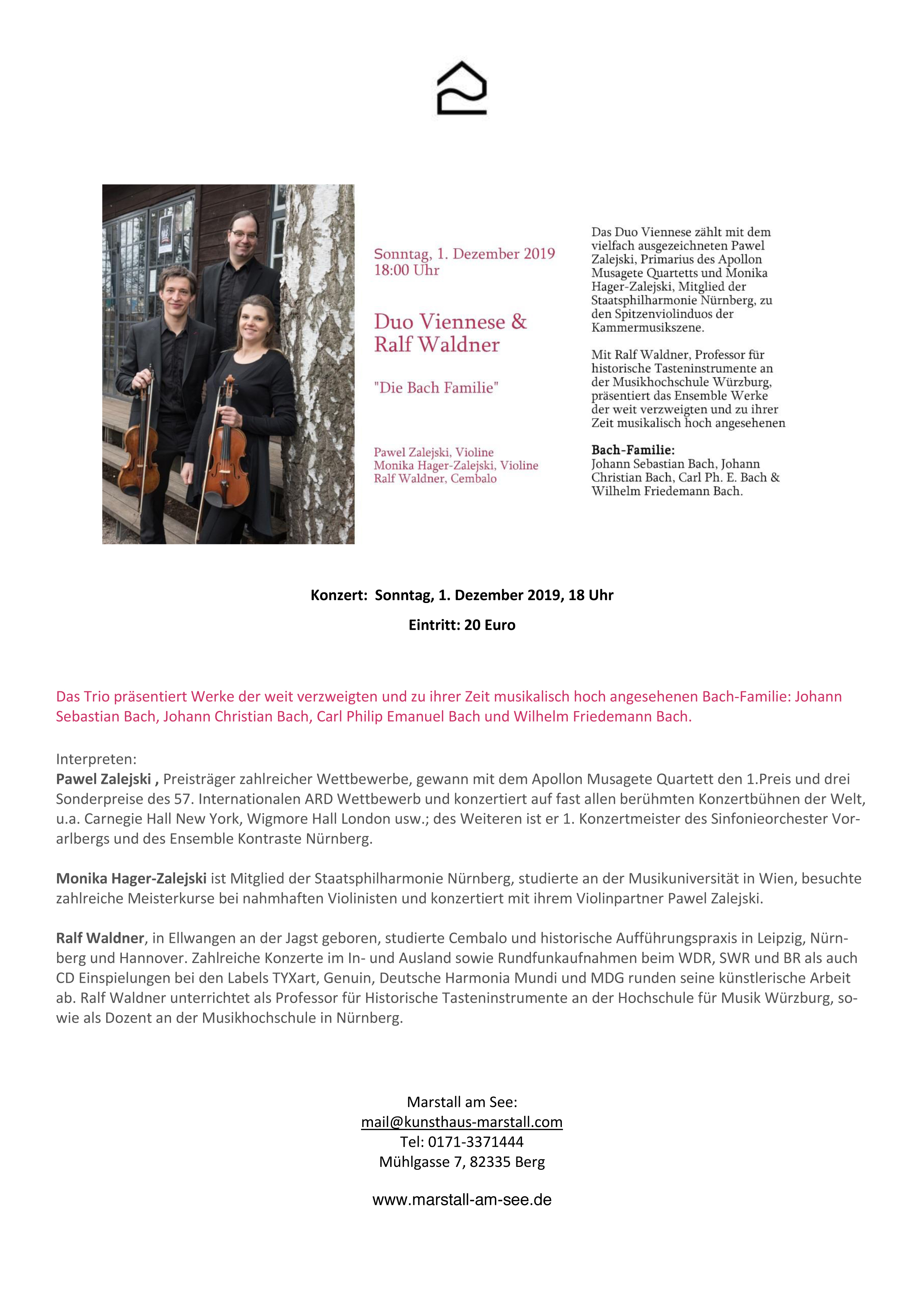 Sonntag: Bach-Konzert im Marstall