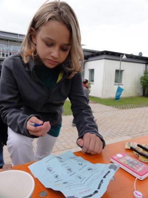 Ex-OMG Schülerin Lola stempelte viele Laufzettel beim Nagel-Hämmern