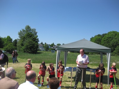 Der 1. Vorsitzende Andi Hlavaty dankte allen Helfern: dem Bürgermeister Monn und der Verwaltung für die tolle Zusammenarbeit; dem Förderkreis, ohne den der Bau nie möglich gewesen wäre; dem Gemeinderat und Landrat Roth für seinen Einsatz bei der Herausnahme des Gelände aus dem Landschaftsschutzgebiet; Herrn Moser vom BLSV für seine Unterstützung bei der Beantragung der Zuschüsse; dem MTV-Vorstand und besonders Elke Sigel für die Beschaffung von Zahlen; Elke Link und Christian Kalinke für die „Gib’ alles“ – Aktion.