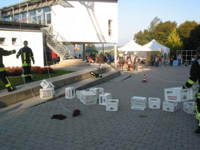 Ein richtiger Hotspot ist Aufkirchen an diesem Wochenende. Nach der Eröffnung des Kulturspaziergangs fanden heute die 4. Spiele ohne Grenzen statt – wie immer organisiert vom äußerst aktiven Förderverein der Oskar-Maria-Graf-Schule. Neben Tombola, aufblasbarem Riesenkicker, Würstchen und Kuchen bot auch die Feuerwehr wieder Kindern, die hoch hinaus wollten, die Chance dazu: