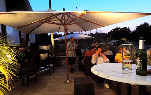 chillen, draußen auf den nagelneuen Loungemöbeln des a’dabei – Bernd Albrechts ganzer Stolz …