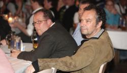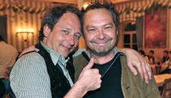 Frisch versöhnt: Postwirt Andi G. an Rathauschef Rupert M. / sowie Festredner Stefan M. mit Geisterfeder Andy A.