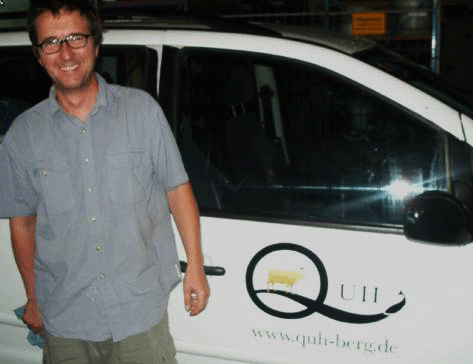 QUH-Mitglied Robi M. freut sich über seinen neuen, schicken Auto-Aufkleber. Nachdem die Werbe-QÜHE von unbekannten Hardcore-Sympathisanten von den Feldern und Zäunen gestohlen wurden, hofft Robi allerdings, dass es jetzt seinem Auto nicht ähnlich ergeht. Für diesen Fall sind die Aufkleber auch über info@quh-berg.de zu beziehen.