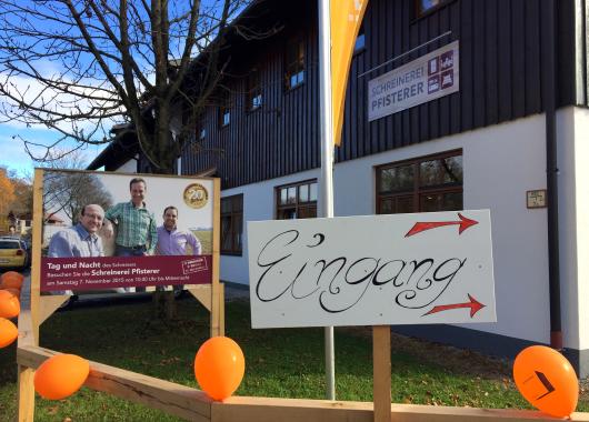 Anlass ist das 20-jährige Bestehen des Handwerksbetriebs in Farchach. Ab 19 Uhr wird die Werkstatt zur stimmungsvoll beleuchteten Festhalle. Bei Live-Musik laden die Pfisterers zu bayerischen Schmankerl und edlen Tropfen.