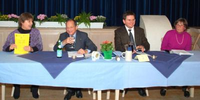 Mit auf dem Podium: die Veranstalter Elke Diehl-Skell, Seniorenbeauftragte der Kolpingsfamilie Höhenrain, Pfarrer Piotr Wandachowicz, im Vorstand des