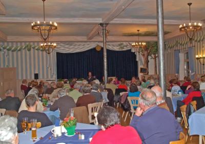 Mit etwa 100 Zuhörern war der Saals des Gasthofs zur Post gut gefüllt, die meisten waren erwartungsgemäß jenseits der 50. Allerdings, so betonte Prof. Gantzer, wäre das Thema durchaus auch für jüngere Menschen relevant, denn die meisten wirklich schlimmen Unfälle passieren im Alter von 20 bis 25 Jahren.