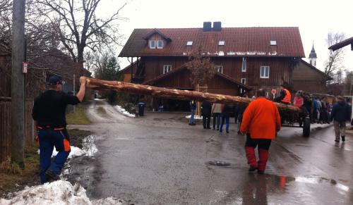 Der neue Baum soll am 20. April aufgestellt werden, wenn der alte umgelegt wird, der dann am 28. versteigert wird. Maibaumfest ist stilecht am 1.Mai. Wir freuen uns drauf (und Allmannshausen, die keine Feier schaffen, auch).