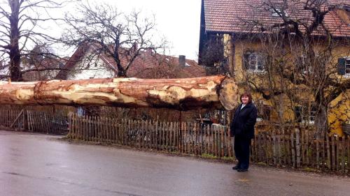 Dann ging es weiter bis in die Bachstraße, wo das Ungetüm mit komplizierten Manövern – und damit sicherlich nur schwer zu klauen – schließlich abgelegt wurde. Für die zahlreichen Zuschauer gab es dann noch eine Brotzeit.