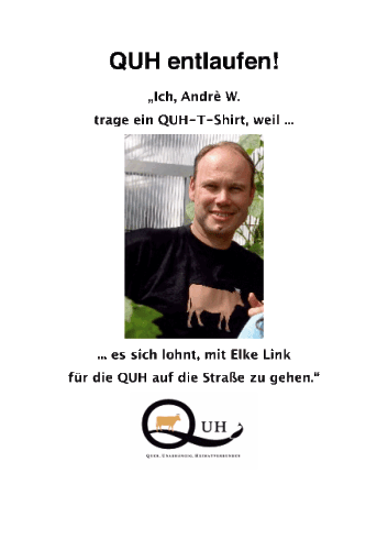 … Unterstützer, der QUH, die es wagen, pro oder contra QUH Meinung zu bekennen, melden sich bitte mit Spruch bei der bekannten Adresse “info@quh-berg.de“. Vertrauensvolle Veröffentlichung garantiert. Nur erstgemeinte Bildzuschriften erbeten!