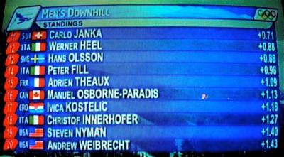 Gestern noch wagte sich unser Holsteiner nach Hearoa, um über die sensationelle Bettelhochzeit zu berichten, heute legte er – wenn das überhaupt noch möglich ist – noch einmal zu und wagte sich als QUH aufs Eis, sprich bei der Olympiade die Abfahrtsstrecke hinunter: André Weibrecht, unser Hirte (und immer noch von Anwaltsschreiben verfolgter Schreiber), der erst vor wenigen Jahren beim alljährlichen legendären “Skifoan” mit unendlichem Ehrgeiz das Skifahren erlernt hat, belegte bei der Abfahrt der Herren in Whistler Mountain mit nur 1,43 Sekunden Rückstand einen achtbaren 20. Platz: