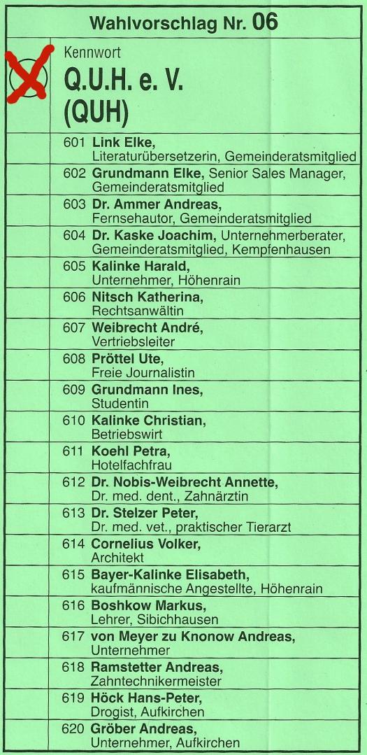 Und plötzlich ist es Aschermittwoch. Zeit um große politische Reden zu schwingen. Die QUH sieht das “quer” und veranstaltet erst morgen, Donnerstag, im Saal der Post um 19 Uhr einen “politischen Ascherdonnerstag” mit einem der legendären Spaziergänge von Volker Cornelius durch unsere Gemeinde. Statt große Reden zu schwingen, lassen wir heute einfach unsere Namen sprechen: