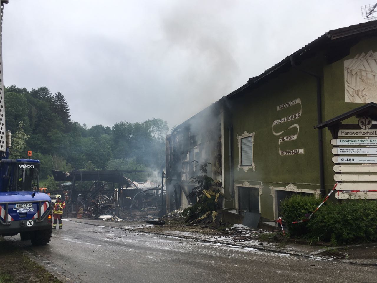 Bis zur Stunde sind noch das Technische Hilfswerk und mehrere Feuerwehren voll im Einsatz. Auch Krankenwagen sind vor Ort. Verletzt wurde jedoch offenbar und hoffentlich niemand – die sieben evakuierten Bewohner sind laut Auskunft von Bürgermeister Monn in Sicherheit. Eine Familie wurde im Bauhof einquartiert. Die Brandursache ist noch nicht ermittelt. Die Umgebung ist großräumig abgesperrt, damit die Arbeiten nicht behindert werden.