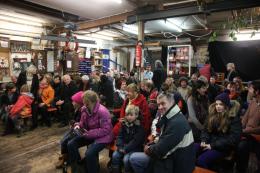 Im Uhrzeigersinn: Der Ernstl, das Publikum, die Einführungsrede, die Organisatoren; kurz: Was quhckst du?