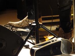 Angesichts des größtenteils gesetzt wirkenden Publikums waren wir skeptisch, ob das Dorfpublikum die wilde, machmal laute und manchmal gar atonale Musik von James Blood Ulmers 3-Mann-Band “Odyssey” (Gitarre, Geige, Schlagzeug) goutieren würde. “Blood” Ulmer spielt eine einzigartige Mischung aus dunklem Delta-Blues und Free-Jazz, der von Ornette Coleman, mit dem “Blood” in den 70ern zusammenspielte, beeinflusst ist. Einzigartig der Stil, Gitarre zu spielen: “Blood” hat alle Saiten seiner alten Gibson auf A gestimmt und greift nicht Akkorde, sondern nur einzelne Töne. Ebenso einzigartig sind die Schuhe des Musikers, deren Material Musikerkollege Kinky Friedman wohl als “Brontosaurus-Vorhaut” bezeichnen würde. Es wurde ein vielumjubelter Abend. Wahnsinn, dass so etwas bei uns auf dem Land möglich ist.