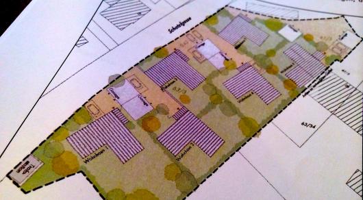 … mit nur einer Gegenstimme genehmigte der Gemeinderat als Vorbescheid das Projekt einer Wohnbaugesellschaft, auf dem Grundstück der Riedl-Fabrik im Ortskern von Berg sechs Einfamilienhäuser zu errichten. Geplant werden sechs 12x12m große, zweistöckige Einfamilienhäuser mit einem 6x6m großen Garteninnenhof; Dachform: Sattel- oder Pult. Die grundsätzlichen Bedenken, die der Gemeinderat im Oktober 2012 gegenüber dem Projekt noch geäußert hatte (vgl. den damaligen Blog-Artikel /?p=1819/ ) und die damals zur Ablehnung des Projektes geführt hatten, waren irgendwie verflogen.
