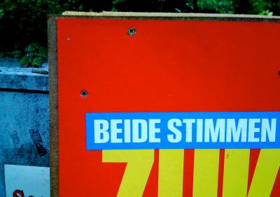 Nichts dahinter? Großplakate von zwei konkurierenden Parteien in Berg