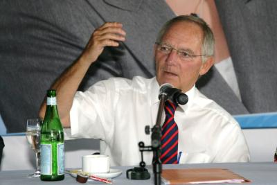 Minister Schäuble vor ansprechendem Hintergrund