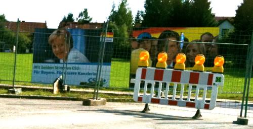 Keinen besonders vorbildlichen Verlauf nimmt die Ü-18-Wahl, die in Deutschland in Kürze angeblich ebenfalls abgehalten werden soll. Die Bundeskanzlerin weigert sich Wahlkampf zu machen. DAs Land liegt lahm, so als ob es bei dieser Wahl eh um nicht ginge. Der “Spiegel” schrieb gestern: “Jetzt scheint vorstellbar, dass ein demokratisches System auch an der mutwillig herbeigeführten Erkaltung Schaden nehmen könnte.” Einzig die – nach dem desaströsen Landtagswahlergebnis vom letzen Jahr – etwas panische CSU schaufelt schon den dritten Minister in unser Dörflein (heute in der Post: Herr Fahrenschon). Einzig an der Großbaustelle am Ortseingang verstecken sich hinter den Baggern 2 Plakate, die so tun, als ob die schwarz-gelbe Koalition eh schon ausgemacht sei. Alle anderen Parteien glänzen durch Wurstigkeit, stille Abwesenheit. Lethargie. Es gibt derzeit mehr Plakate für Ü-30-Parties als für politische Parteien.