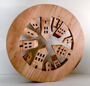 Die “Gemeinderad”-Skulptur selbst hätte – mit Gebäuden der 14 Berger Orstteile ausgestattet – ungefähr so ausgesehen.
