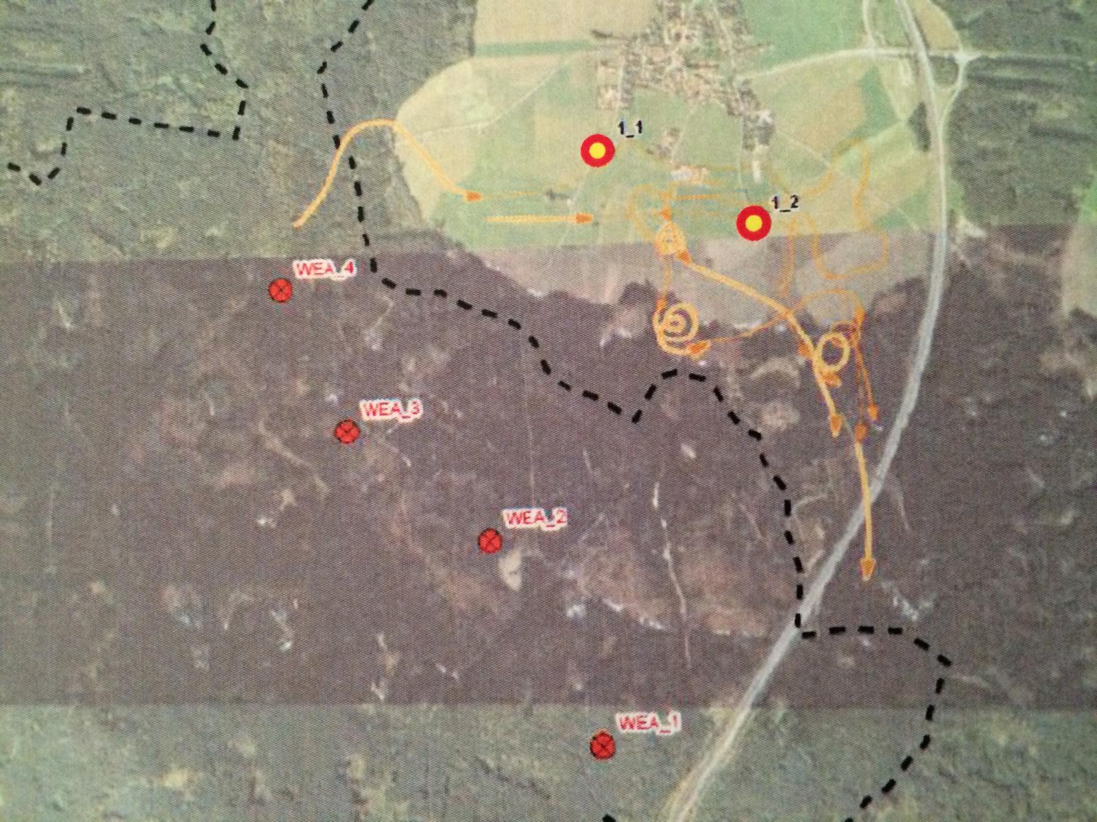 Der Rotmilan zieht seine Kreise (im Bild gelb) woanders. in 310,5 Stunden wurde mit Revierkartierung und Horstsuche die Großvogel-Funktionsraumanalyse erstellt. Sie ergab: Es bestehen keine Verstöße gegen das Schädigungs-, das Störungs- und das Tötungsverbot.