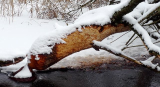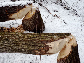 Da Biber keinen richtigen Winterschlaf halten, sondern nur Art eine Winterruhe, sind gerade jetzt bei frischem Schnee Fifis Spuren zu verfolgen.
