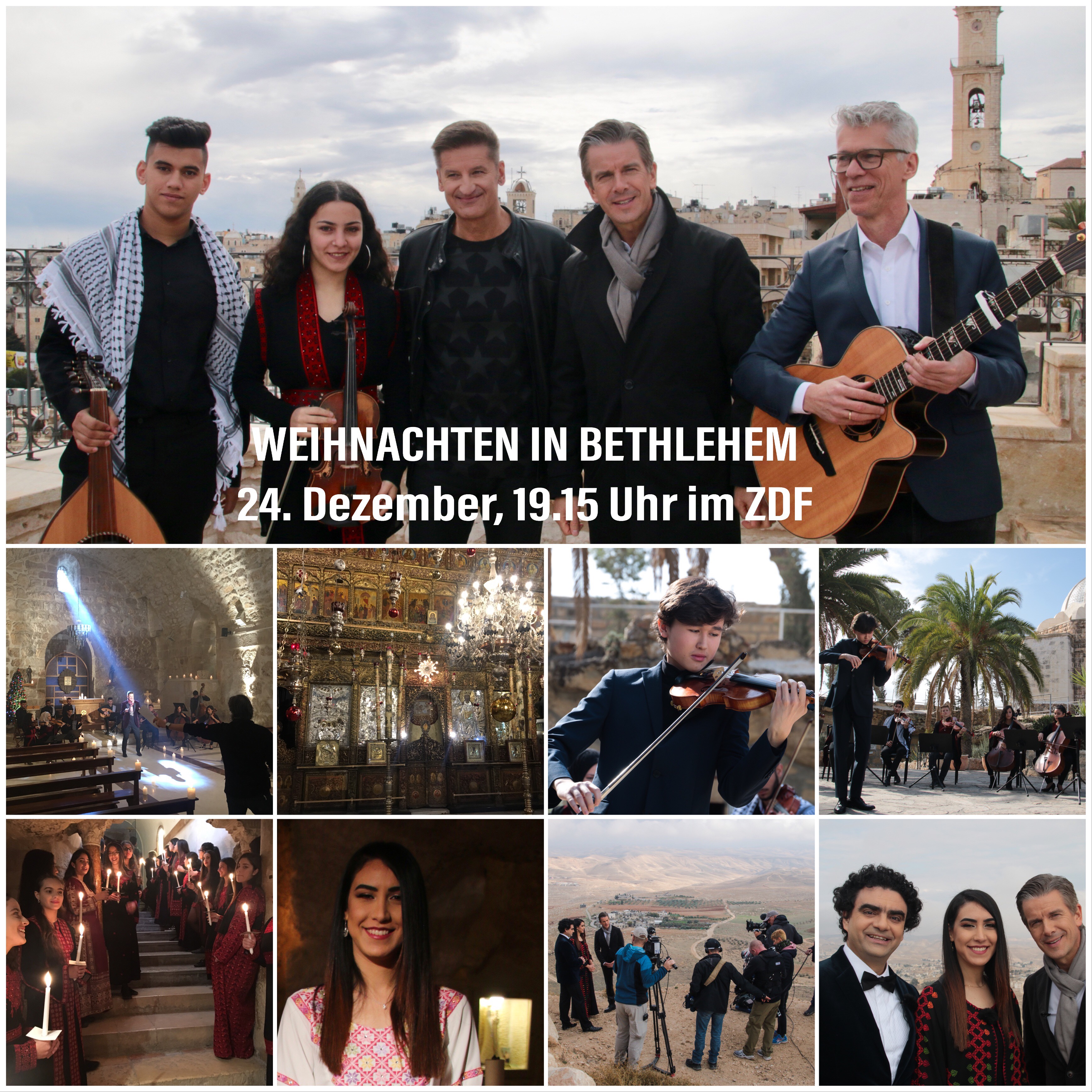 Philipp Pröttel (unten rechts) berichtet aus dem Heiligen Land: am 25.12. um 12 Uhr 35 im ZDF