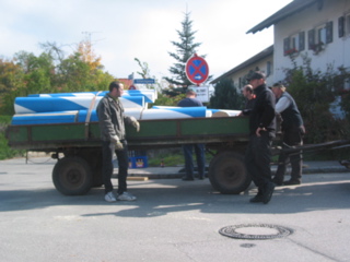 Mit vereinten Kräften legten ihn Burschen und Feuerwehr um.
