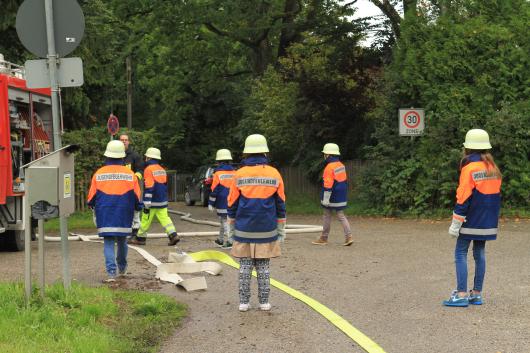 Über 30 Kinder konnten einen Tag lang Feuerwehrmann bzw. -frau sein: Brände löschen, Leitern steigen, Schläuche werfen, Erste-Hilfe leisten und vieles mehr.