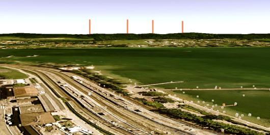 Die Bilder von der Ansicht der Windräder (Rotorhöhe 207m) stammen vom “Aviator”, der die fehlgeschlagene Unterschriftenaktion für ein Bürgerbegehren gegen die Räder in Berg koordiniert hat.