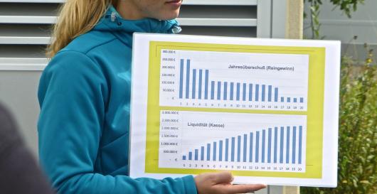… man prognostiziert auf Grund der jahrzehntlangen Erfahrungen in 20 Jahren abzüglich aller Kosten bei 100%iger Finanzierung gut 2,5 Millionen € Gewinn für 4,7 Millionen Investition.
