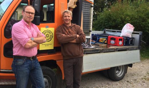 Der schönste Sport ist Biertransport: Andre und Ralf von der “Brauerei Schloß Berg” bei der Anlieferung von “eigenem Gebräu” vor dem Marstall.