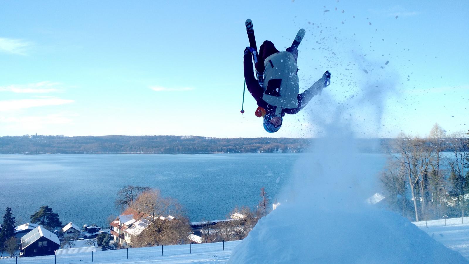 Der Winter ist da – und droht auch gleich wieder zu verschwinden: Im Schnee von Leoni haben sich Jugendliche eine Schanze gebaut und machen wagemutige Sprünge – Felix Reverchon fotografierte hier Nick Kachelrieß beim akrobatischen Salto über Leoni. Nun drohen Plusgrade mit Regen.