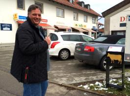 QUH Listenkandidaten HP Höck (No. 19) & Sissi Bayer-Kalinke (No. 15) beim Aufstellen der Zeitungsständer in Aufkirchen und Höhenrain