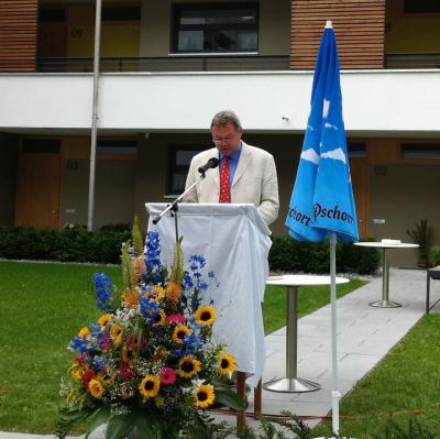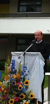 Rupert Monn betonte, wie stolz er auf diese Einrichtung sei, mit der bezahlbarer Wohnraum für alle Einkommensschichten geschaffen worden sei. Das Gebäude habe das Ortsbild verändert, aber es füge sich harmonisch in die Landschaft ein, auf der Westseite habe man viel Grün und im Winter sogar Seeblick, im Osten seit der Sportplatz, wo immer etwas zu sehen sei.