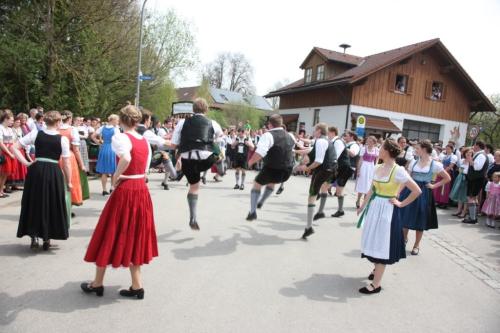 Vom Feuerwehrhaus hatte man den besten Blick, als die Farchacher Madln und Burschen einzogen, um in den Mai zu tanzen.