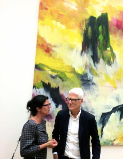 Bergs 3. Bürgermeisterin Elke Link gratuliert dem Künstler Bernd Zimmer zum Berg-Werk