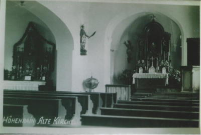 Nach dem zweiten Weltkrieg wurde die Kirche aufgrund erneuten starken Bevölkerungszuwachses zu klein und eine zweite Kirche wurde gebaut, die 1950 eingeweiht wurde. Für zwei Jahre gab es in Höhenrain zwei Kirchen, dann wurde das Kirchlein gegen den Widerstand der Baubehörde abgebrochen und die Steine des Tuffsteinbogens verkauft. Die Tür zur Sakristei wurde nach Gelting gegeben.