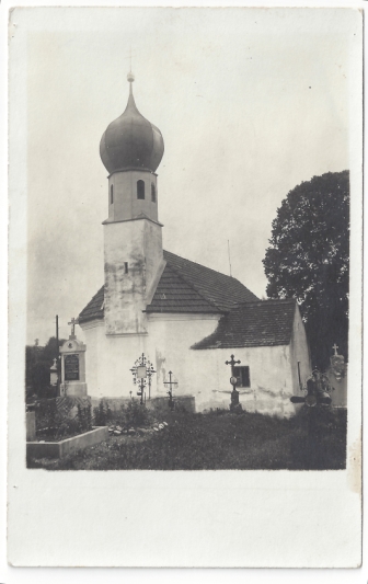 Die Kirche war von einem Friedhof umgeben.
